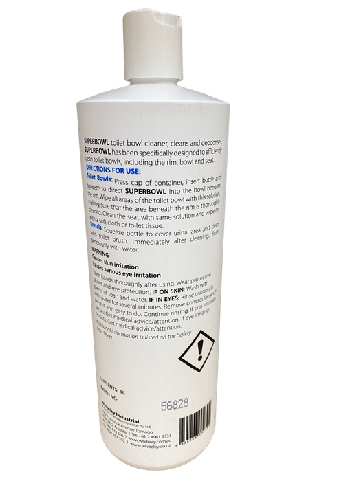 Superbowl can easily and quickly remove different soils and stains from toilets and urinals including: rust, scale, hard to remove toilet stains and algae growth. Superbowl has been specifically designed to efficiently clean toilet bowls, including the rim, bowl and seat.