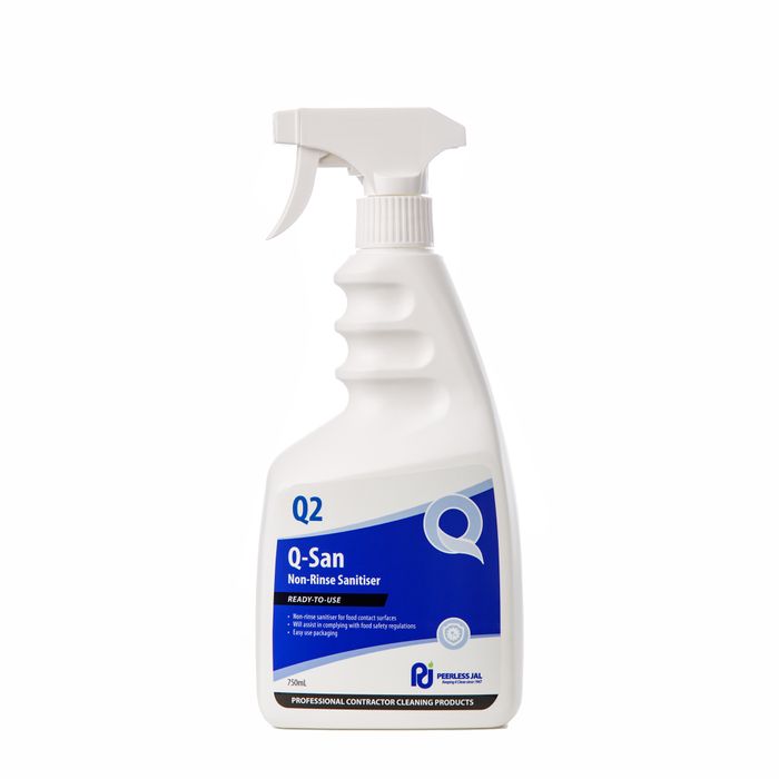 Q-SAN is a non-hazardous, ready to use, non-rinse sanitiser for pre-cleaned food contact surfaces. A wide variety of applications are found in the food industry including sanitising of food preparation areas, benches, table tops and all surfaces that are determined HACCP areas.