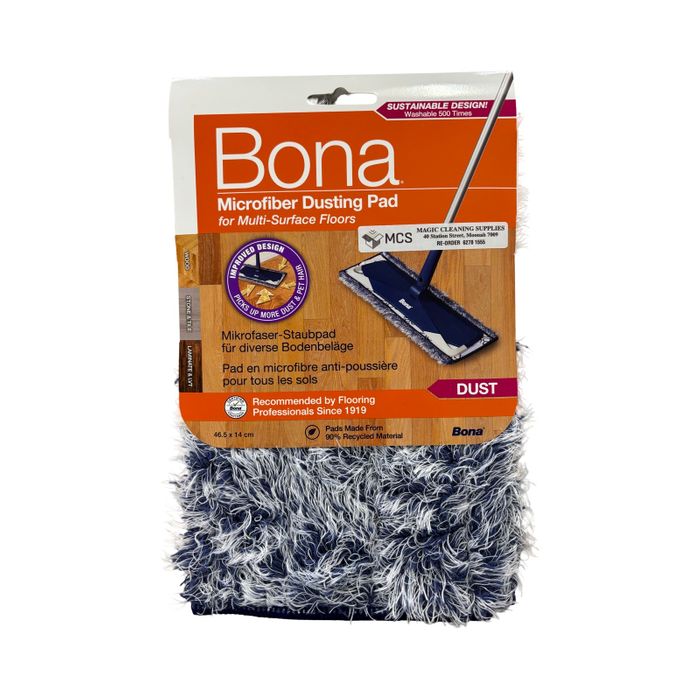 Designed for use on all Bona Mops, including the Bona Spray Mop (sold separately), the Bona Mop Microfibre Dusting Pad is ideal for use with the mop to pick up dust and dirt before wet mopping your floors. The Dusting Pad easily attaches to the Bona Mop base using simple fastening tape strips. The Dust Pad design uses electrostatic energy to attract dust, pet hair, micro particles and common household allergens. The dust pad is machine washable and reusable up to 300 times.