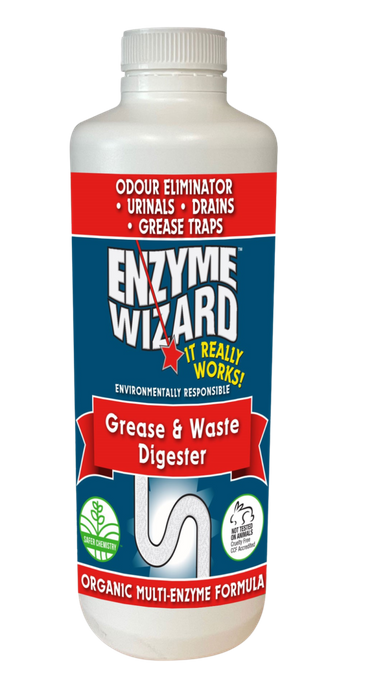 The latest formula and more advanced Enzyme Wizard Grease & Waste Digester works naturally to help break down waste and grease. This helps improve grease trap performance.