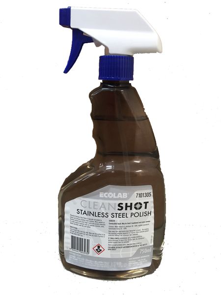 Ecolab Cleanshot Stainless Steel Polish is specially formulated to protect and enhance stainless steel surfaces. When applied as directed, surfaces will resist finger marks and provide protection to a wide range of surfaces such as cook-tops, benches, sinks, plastic laminates, wall tiles and leather.