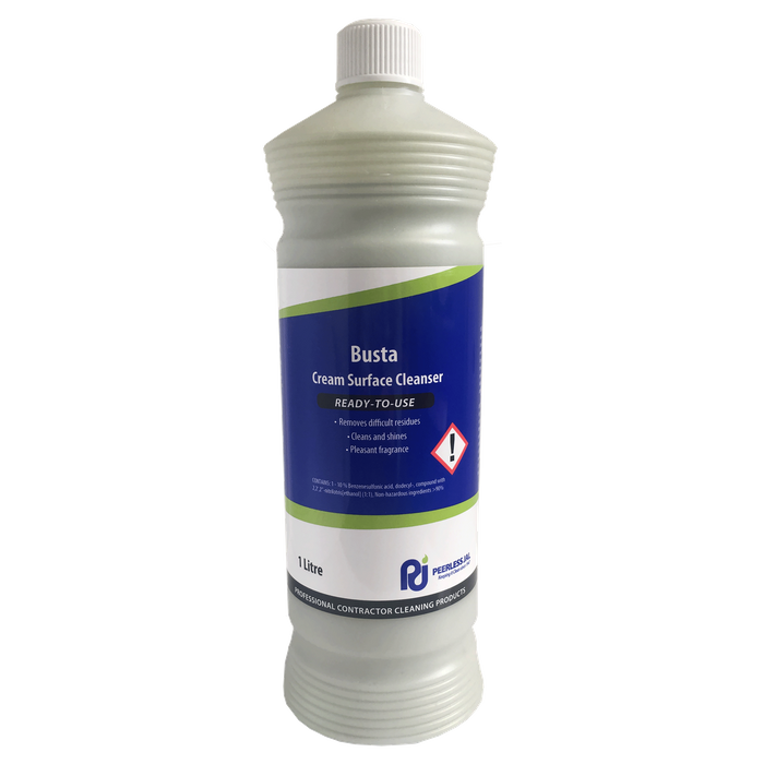Busta is a powerful commercial cleaning agent that cleans and shines baths, basins, sinks, stoves, stainless steel and chrome surfaces, laminates, and porcelain and vitreous enamel surfaces.