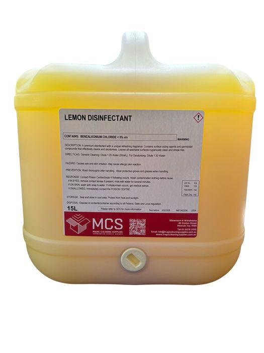 DESCRIPTION: A premium disinfectant with a unique refreshing fragrance. Contains surface acting agents and germicidal compounds that effectively cleans and deodorises. Leaves all washable surfaces hygienically clean and streak free.
