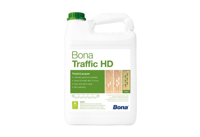 Ideal for commercial use in areas where downtime is limited and high wear resistance is a must. Bona Traffic HD (Heavy Duty) is a two-component finish available in two sheen levels: satin and extra matt. Bona Traffic HD is designed to be used in commercial situations where the level of traffic and the use of the floor is at its most extreme.
